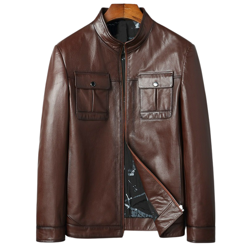 Mens Sleek Front Pocket Genuine Lambskin Leather Jacket
