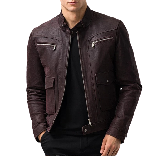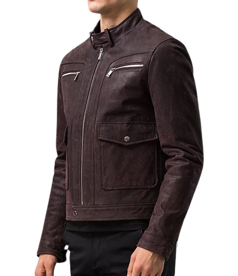 Mens Asher Front Pocket Brown Genuine Lambskin Leather Jacket