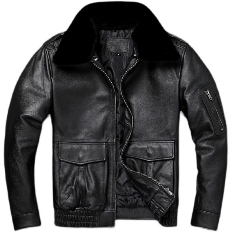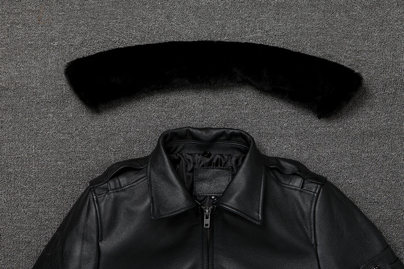 Crafted of cow leather with removable faux fur, this traditional bomber is jacket inspired by the American military aviator A-2 style.