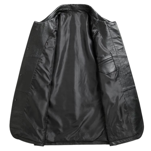 For a refined, sleek look, add this cool coat to your wardrobe staples. Featuring 3 button front mid section with 2 front hand warmer pockets.