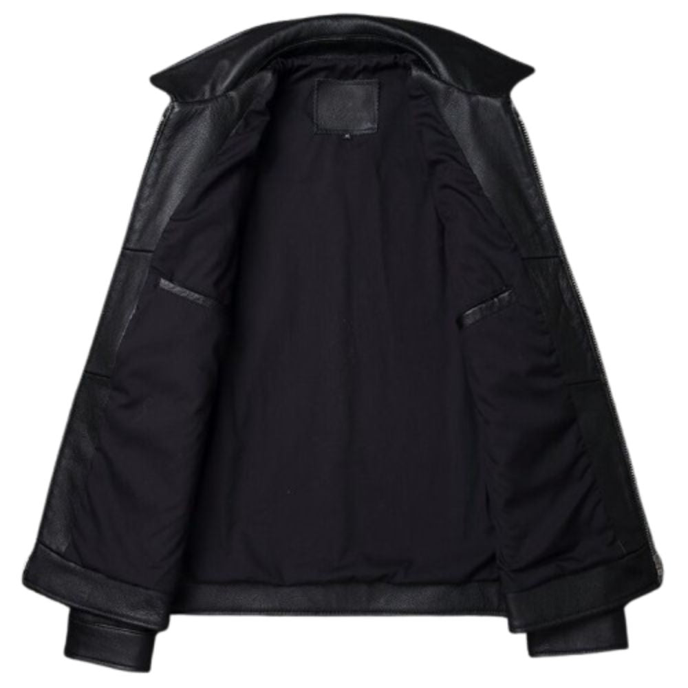 Vintage Black Slim-Fit Shirt-Collar Biker Attire Real Leather Jacket for Men