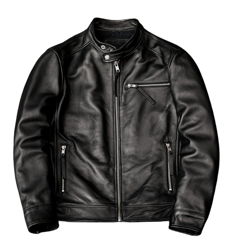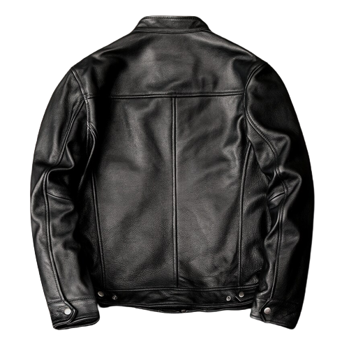 Semi-Casual men's leather jacket with three front pockets. Zippered midsection.  Soft and supple lambskin leather.  Elegant and smooth feel. Made with 100% genuine leather.