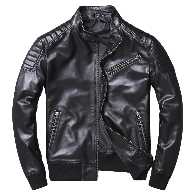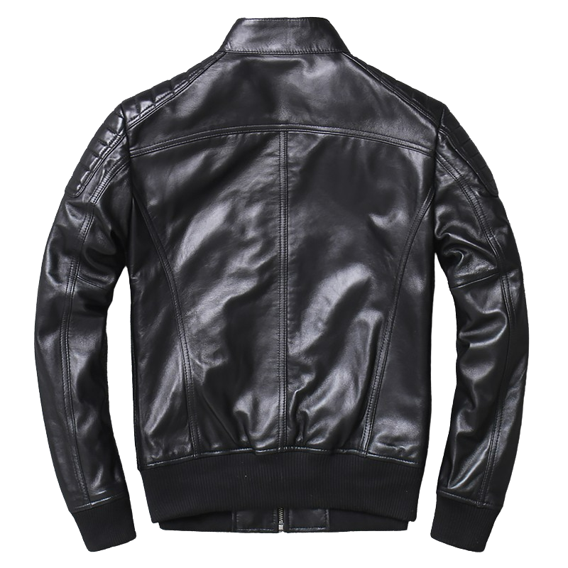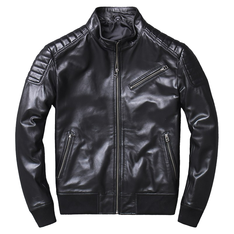 Semi-Casual men's leather jacket with three front pockets. Zippered midsection.  Soft and supple lambskin leather.  Elegant and smooth feel. Patchwork on shoulders. Made with 100% genuine leather.