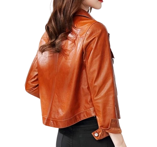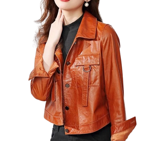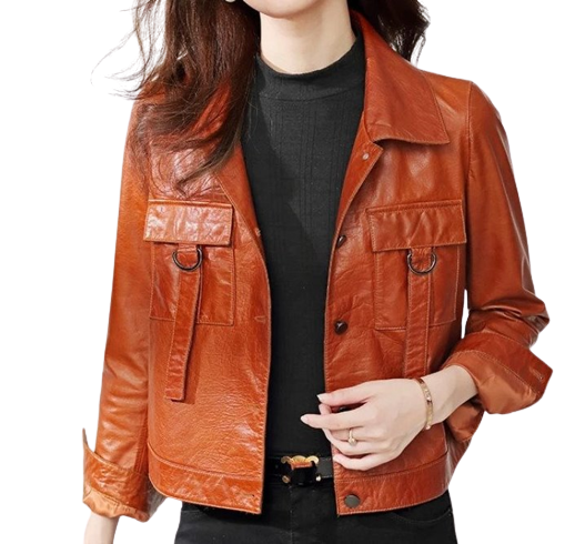Womens Hazel Front Pocket Tan Genuine Lambskin Leather Jacket