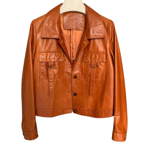 For a refined, glossy look, add this cool jacket to your wardrobe staples. Featuring two front flap pocket and ultra lightweight constructed from lambskin leather. Great for outdoors and party wear!