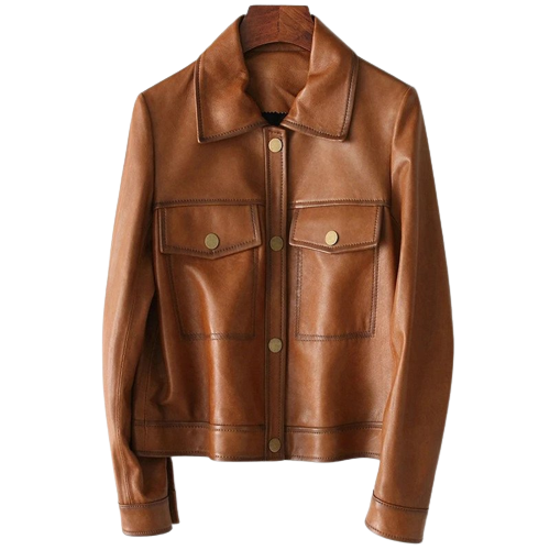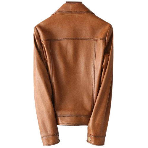 For a refined, glossy look, add this cool jacket to your wardrobe staples. Featuring two front flap pocket and ultra lightweight constructed from lambskin leather. Great for outdoors and party wear!